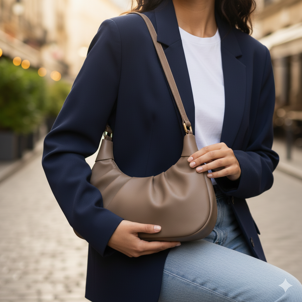 Who said a bag has to be oversized to carry it all? The Astra Bag is proof that less really is more. With its sculpted curves and gathered details, it’s sleek enough for a night out but roomy enough to slip in your phone, keys, lipstick, and those “just in case” extras. Think of it as your everyday sidekick that never steals the spotlight—just quietly makes every outfit look ten times better.