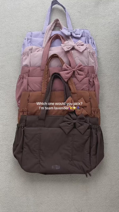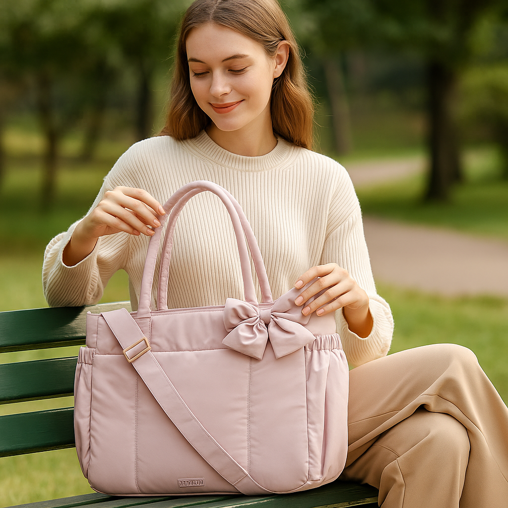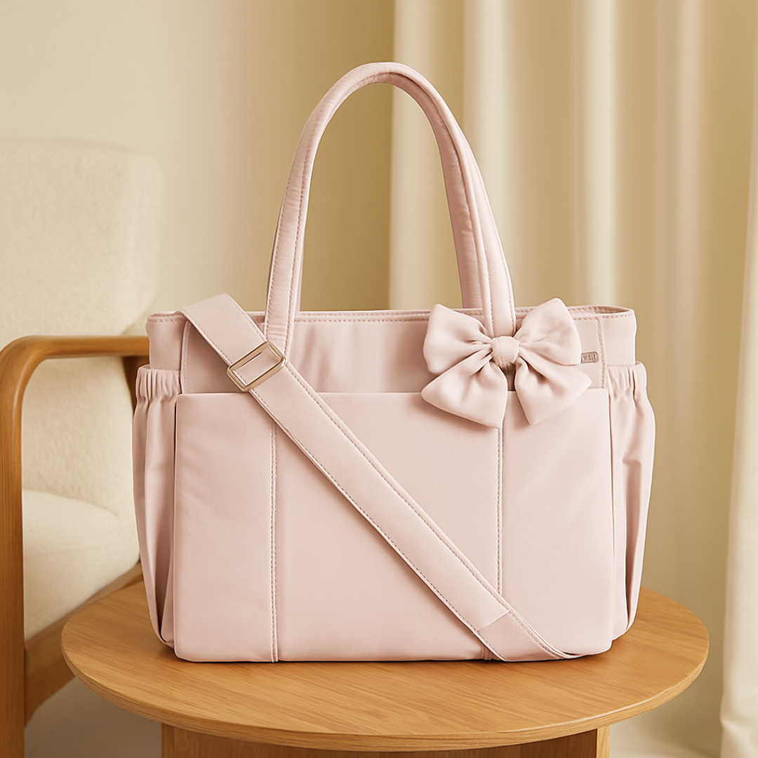 Lightweight yet spacious, with a playful bow detail and smart pockets, this bag makes staying organized look effortless while keeping your style on point.