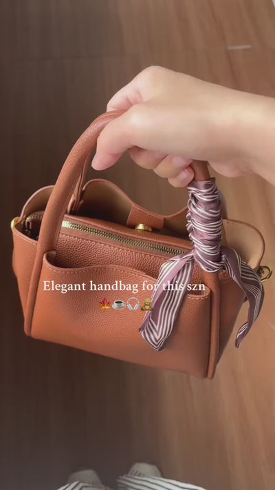 From the soft leather finish to the elegant scarf detail, this bag is made to stand out. Compact yet roomy, it carries your must haves with ease while adding a touch of polish to any outfit. A timeless piece you’ll want by your side wherever the day takes you.