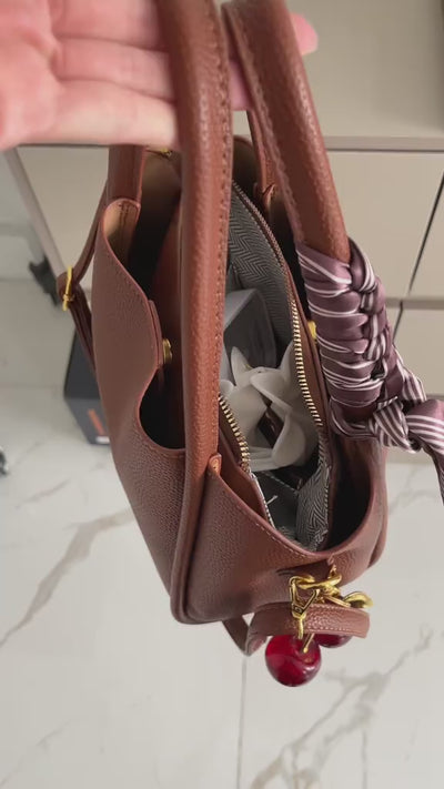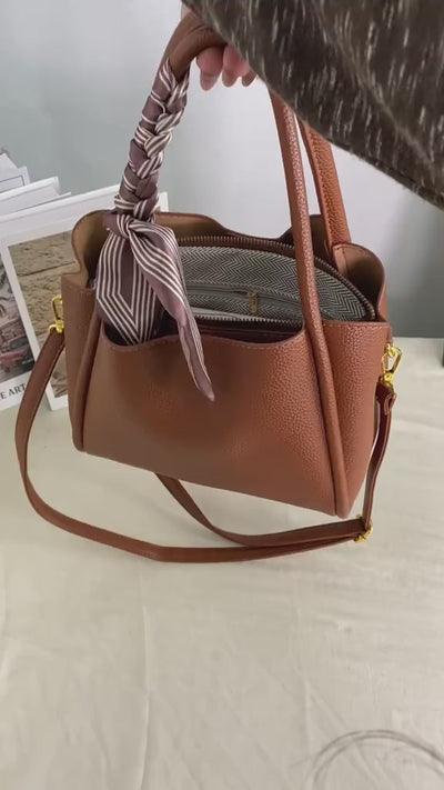 Crafted with soft pebbled leather, a structured silhouette, and a scarf detail that feels effortlessly chic this satchel takes you from errands to evenings with ease, all while looking like a designer favorite.